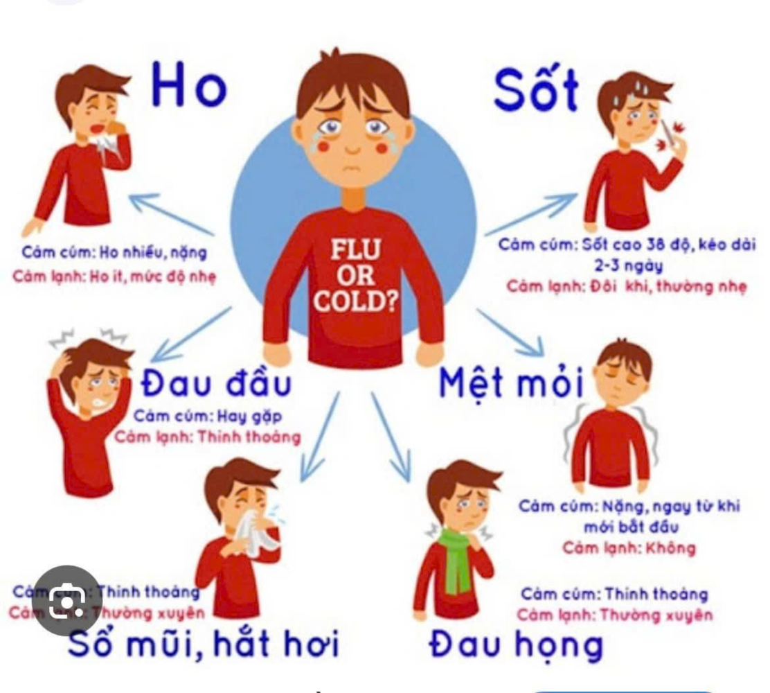 👉 Triệu chứng thường gặp ở trẻ bị cúm: