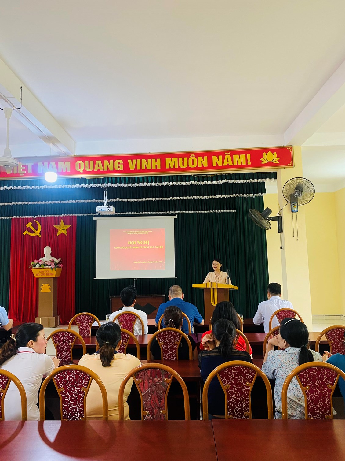 Phát biểu tại hội nghị đ/c Dương Thị Thập UV ban thường vụ huyện uỷ đã chúc mừng các đ/c được điều động, đồng thời nhấn mạnh trách nhiệm của các đ/c lần này tiếp tục phát huy những thành tích của bản thân và phát triển công tác giáo dục của trường cũng như bậc học mầm non trong năm học tới