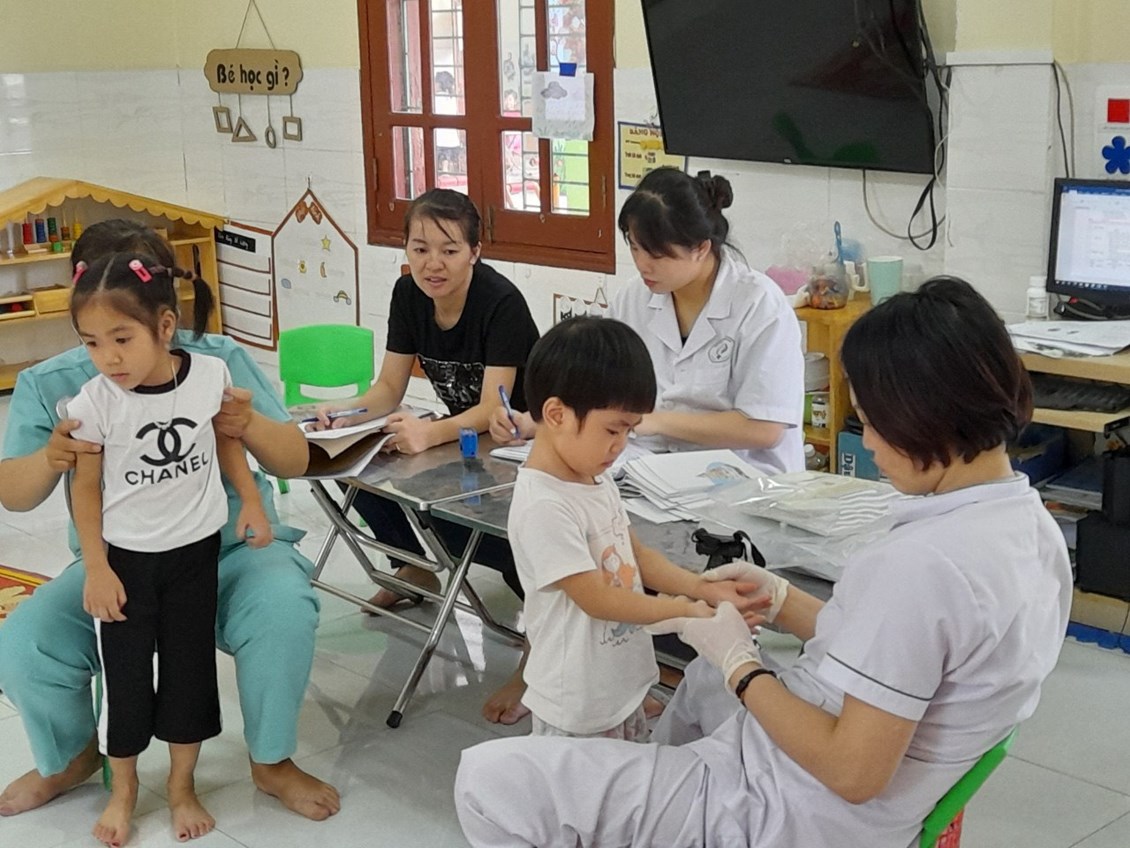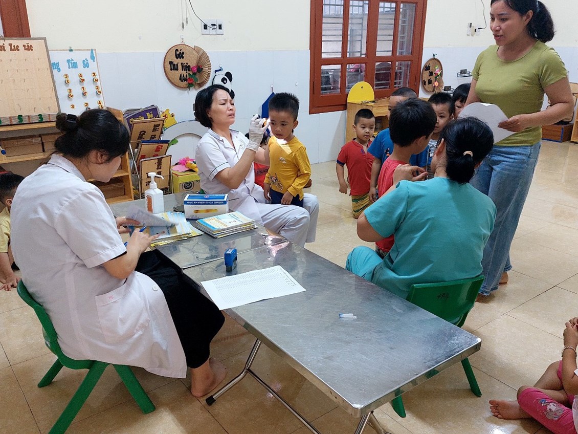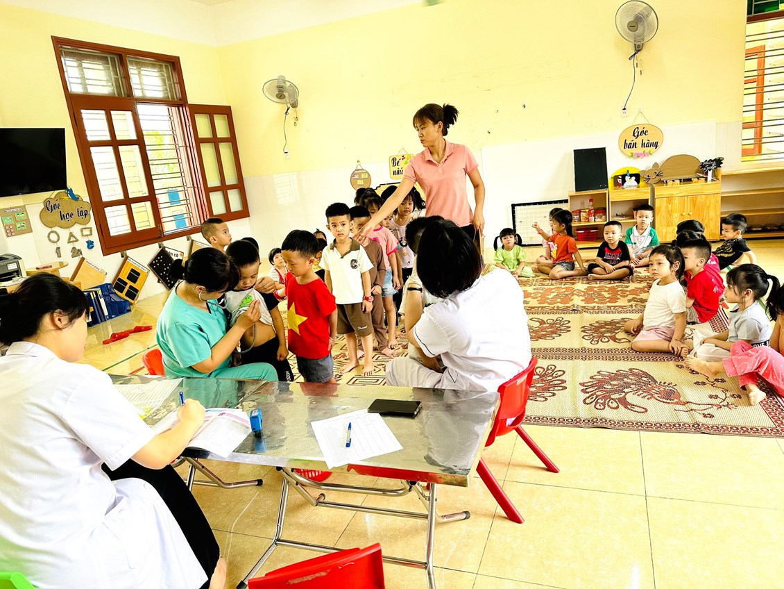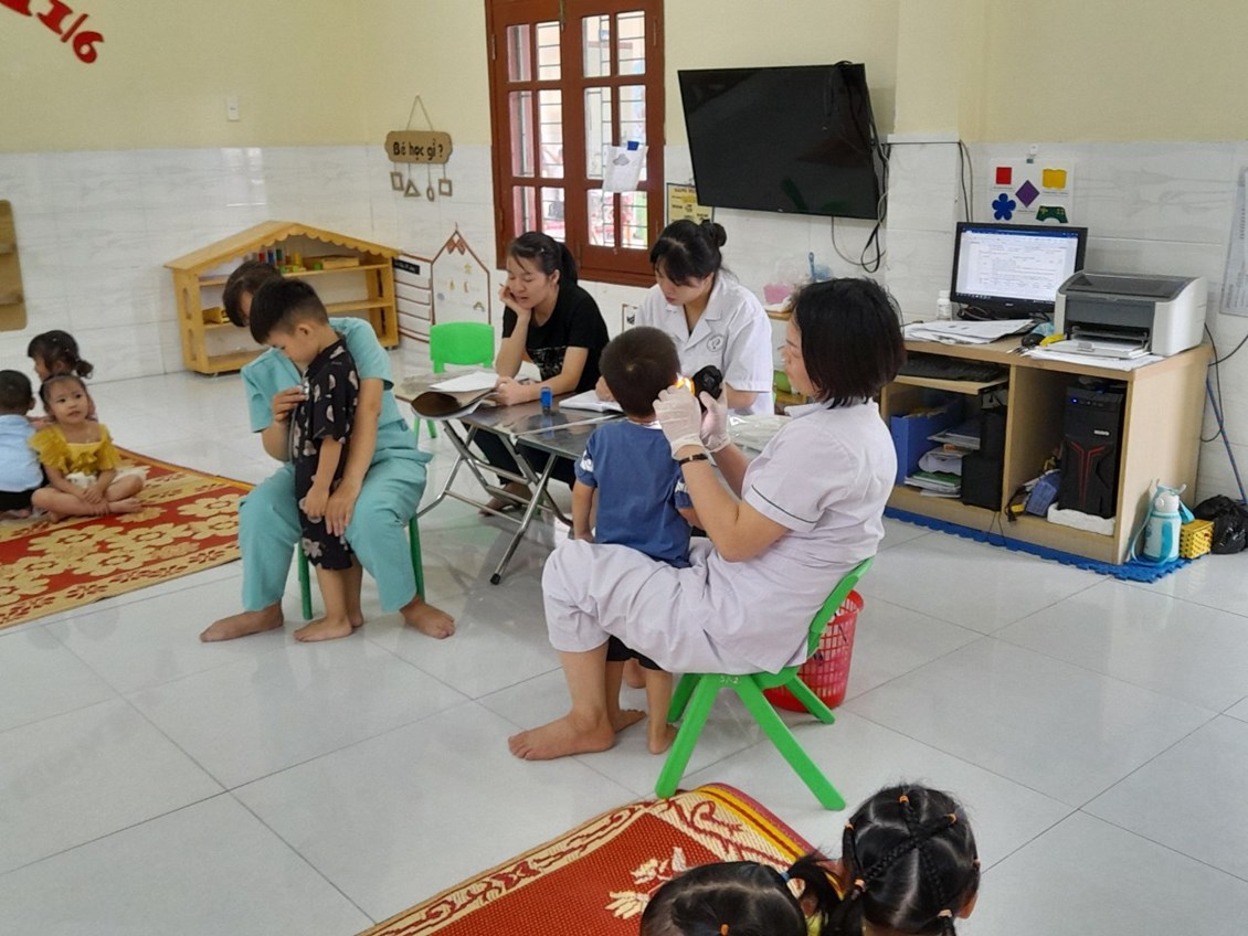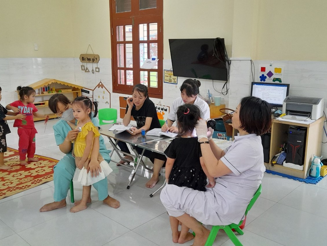 Trong các hoạt động của nhà trường, công tác chăm sóc sức khoẻ cho trẻ là một việc làm luôn được nhà trường đặc biệt quan tâm. Từ nhiều năm nay, việc tổ chức khám sức khoẻ định kỳ cho trẻ đã được nhà trường duy trì thành nề nếp thực hiện thường xuyên theo kế hoạch 1 lần trong năm học.