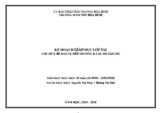 KẾ HOẠCH CHĂM SÓC - GIÁO DỤC TRẺ LỚP 5A1