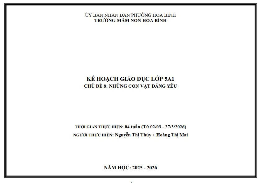 KẾ HOẠCH CHĂM SÓC GIÁO DỤC TRẺ LỚP 5A1