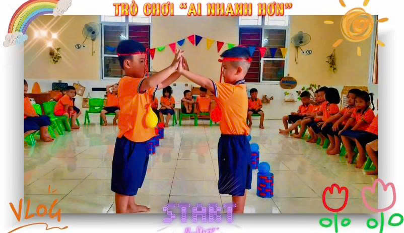Trò chơi “Ai nhanh hơn” tạo động lực cho các con, ai cũng muốn trở thành người về đích đầu tiên! 🏃♀️💨