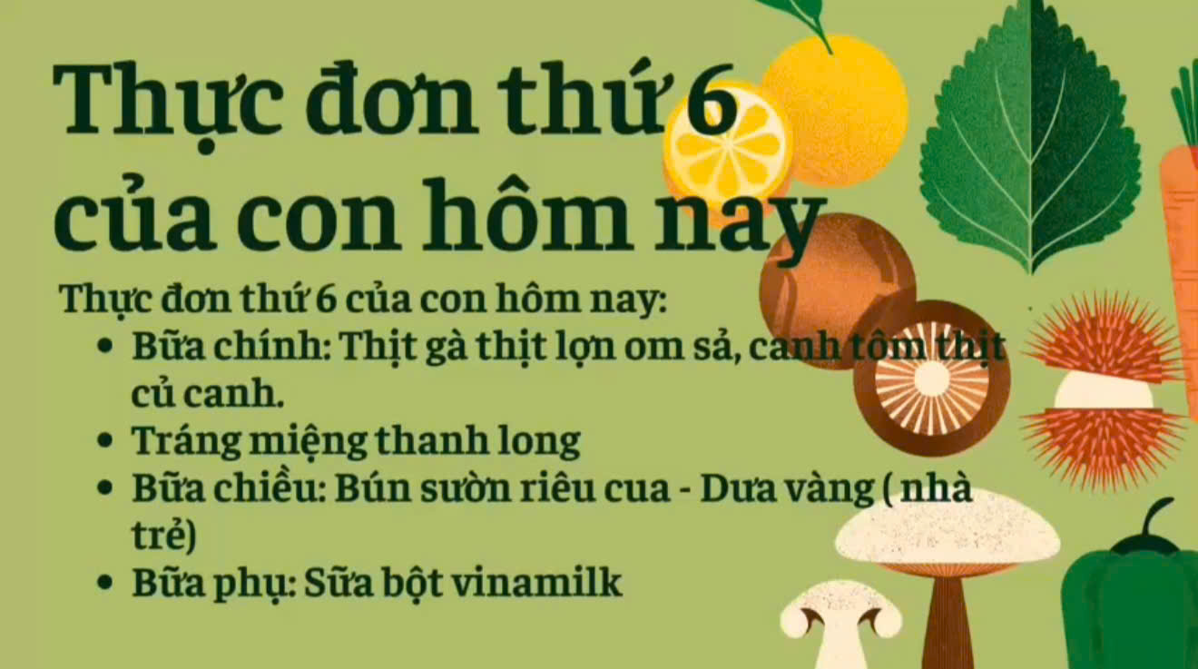 🍽️ THỰC ĐƠN THỨ 6 CỦA CÁC BÉ HÔM NAY TẠI TRƯỜNG MẦM NON HOÀ BÌNH 🌷